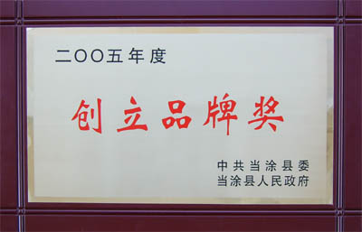 我公司由于2005年獲得了“安徽省名牌產(chǎn)品”和“安徽省著名商標(biāo)”兩項(xiàng)榮譽(yù),被縣委、縣政府評(píng)為“2005年度創(chuàng)立品牌獎(jiǎng)”,兩項(xiàng)榮譽(yù)分別獲得現(xiàn)金10000元的獎(jiǎng)勵(lì)!