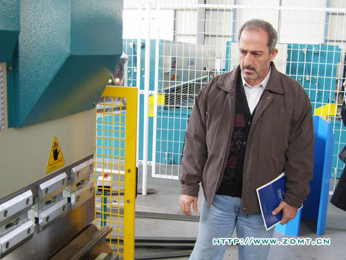 Haiyl A.AI Rawy先生對中國機械行業(yè)尤其是剪板機折彎機非常的熟悉,他表示他們非常重視機器的質(zhì)量,來中德也是由于中德機器在海內(nèi)外都享有良好的聲譽。參觀前,Haiyl A.AI Rawy還特意詢問我們在阿聯(lián)酋有沒有代理,當公司領(lǐng)導回答說目前還沒有時,他釋然一笑,表示希望能夠與中德建立良好的合作關(guān)系。在中德的成品車間,Haiyl A.AI Rawy先生聽取了我公司營狀況及近遠期規(guī)劃的介紹,并就每一款機床的詳細情況進行了介紹,重點詢問了其性能及售價等。他對我們的數(shù)控折彎機尤其感興趣,要求當場進行測試。Haiyl A.AI Rawy特意讓自己的助理拍下了整個操作過程,在我公司工程師的幫助下,Haiyl A.AI Rawy還進一步了解了折彎機數(shù)控系統(tǒng)的編程方面的問題。