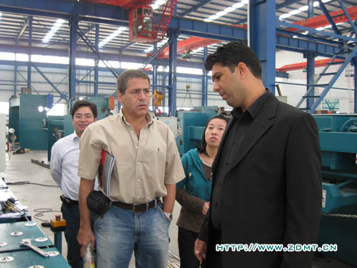 稍事休息,Atila Deniz先生和Mr.Tunc便帶著迫切的心情參觀了中德的各個(gè)車間。從裝備車間到大件車間,至電焊車間再到金工車間??腿藢χ械庐a(chǎn)品表現(xiàn)出濃厚的興趣,提出的問題也是相當(dāng)專業(yè)、細(xì)致。比如,機(jī)床使用材料的鋼號,數(shù)控系統(tǒng)的工作效率等等,無不體現(xiàn)出一個(gè)機(jī)床消費(fèi)成熟國的高標(biāo)準(zhǔn)。