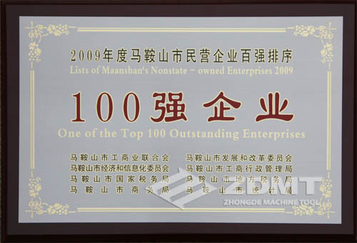 中德機(jī)床榮獲“2009年度馬鞍山民營(yíng)企業(yè)雙百?gòu)?qiáng)”稱號(hào)