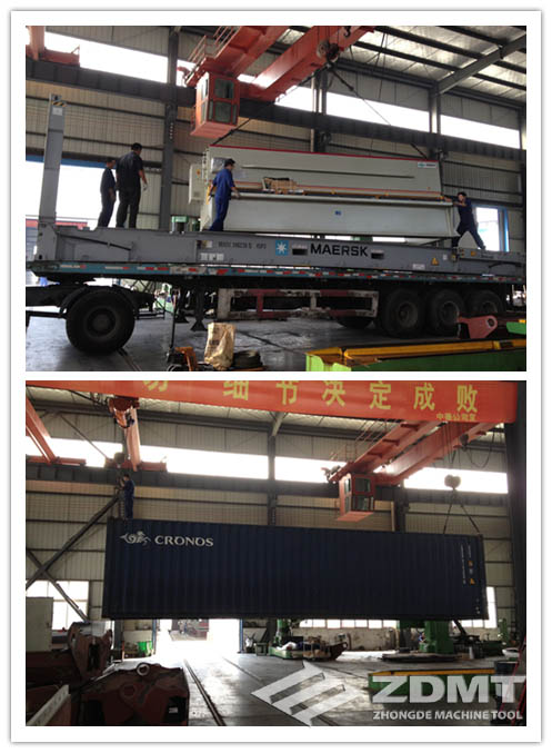 公稱壓力600噸、折彎能力長達7米的折彎機,以及剪切12mm、寬度6米的剪板機,其重量和體積遠遠超過了一般的海運貨柜規(guī)格。尤其是折彎機,重量超過了70噸,沒有過硬的技術和質量,難以承接這樣大型設備的定做;加上機器出口,還要考慮如何拆裝運輸以及到港之后如何安裝調試等多方面的因素,更是對工廠大型設備出口經(jīng)驗能力的考量。