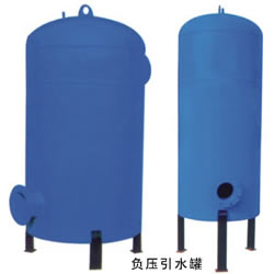 負(fù)壓引水罐,俗稱真空引水罐,用于非吸程供水泵(水源低于泵進(jìn)水口的場所)。消防系統(tǒng)建議用自灌式,如無條件實(shí)現(xiàn)自灌式,消防規(guī)范規(guī)定必須有可靠的引水裝置,即負(fù)壓引水罐,用于抽吸地下水,河塘,湖泊,取水口等自然水,罐相附加自來水一般采用DN25管進(jìn)水,只需一次灌水,終身使用,原理是當(dāng)啟動(dòng)消防主泵開始工作,罐內(nèi)水位下降,灌頂部形成真壓(負(fù)壓),當(dāng)罐內(nèi)水位下降至罐體60%時(shí),灌頂形成一定真空,自然水源即源源不斷地被吸出。 負(fù)壓引水罐是根據(jù)消防的流量,楊程結(jié)合進(jìn)水管的直徑、長度及取水立管的高度直徑而結(jié)合選值。 |