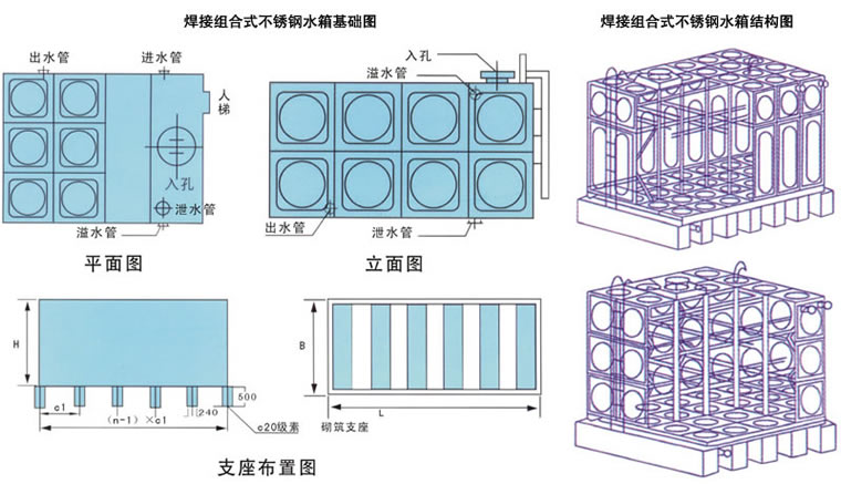 ? 此種水箱按規(guī)范SS177設(shè)計(jì),材質(zhì)為SUS304,耐腐蝕性強(qiáng)、抗震性能好、便于運(yùn)輸、無需大型吊裝設(shè)備,不同容積均可現(xiàn)場組裝。